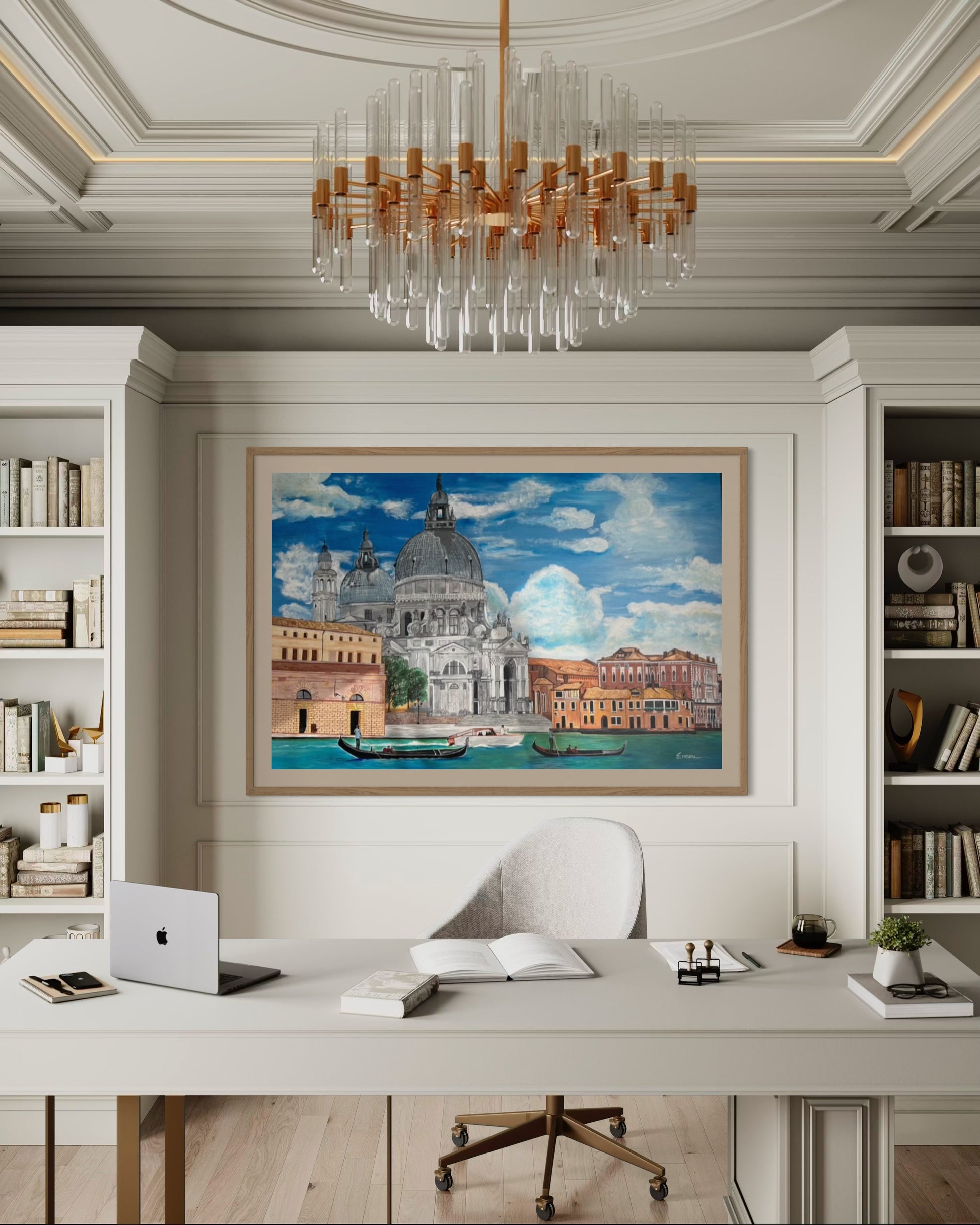Experience the timeless beauty of Venice through this exquisite hand-painted artwork, “Venetian Serenade – Basilica di Santa Maria della Salute.”