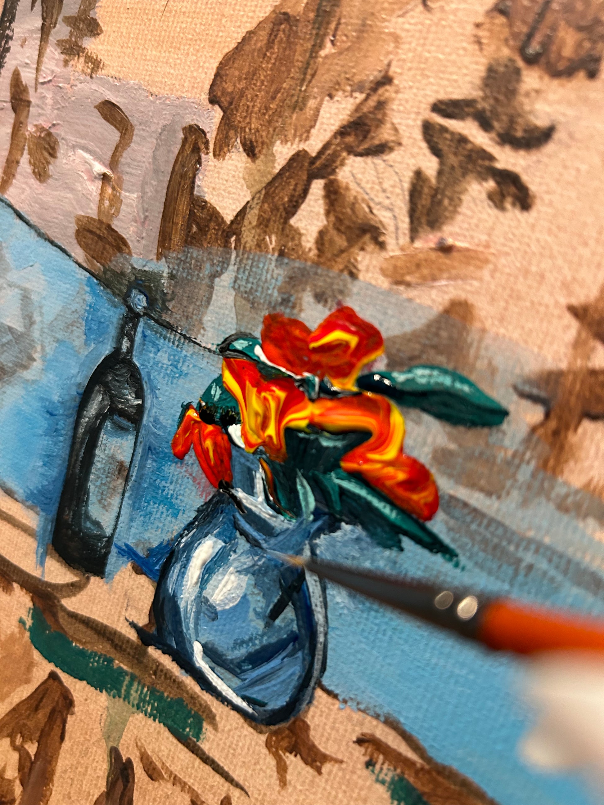 Painted with rich, warm tones and intricate golden accents, this artwork brings the spirit of Venetian charm and sophistication into any home.